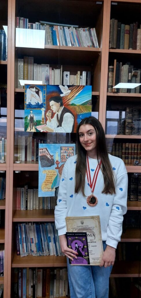 На  ликовен конкурс на тема „Берово – мојот роден крај“, кој го распиша Општина Берово, исто така ја освои првата награда.